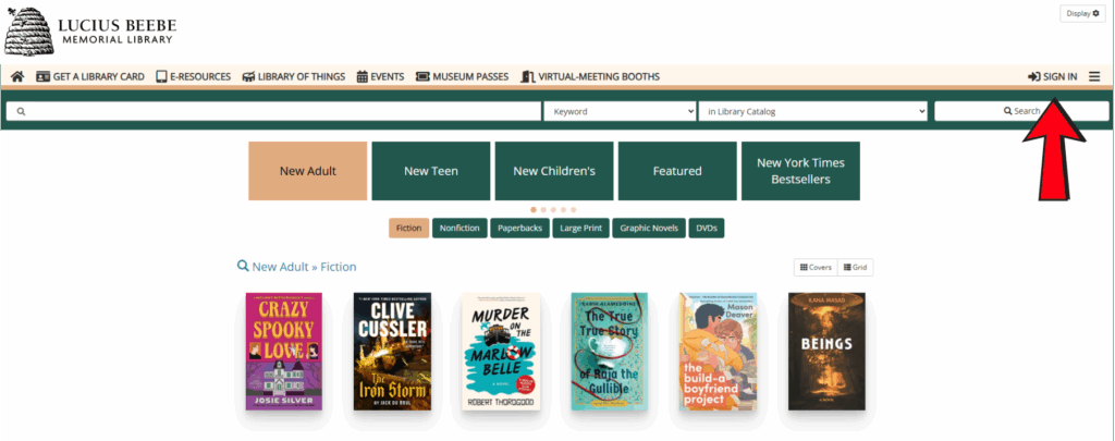You will then be prompted to log in with your library card and pin, which will take you to the Your Account page, where you can also begin searching for books and other materials.